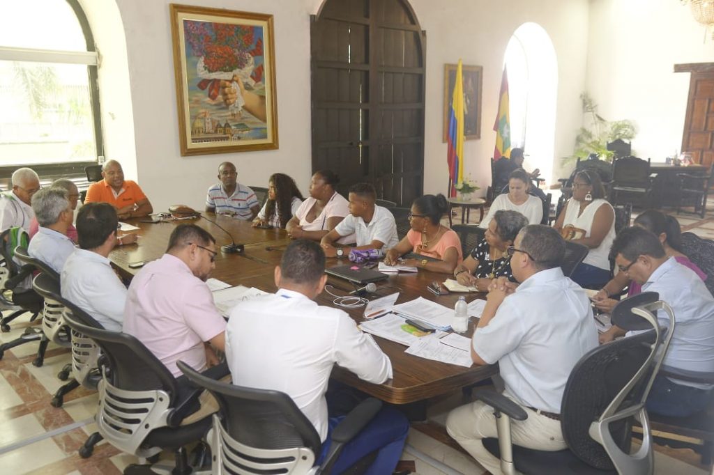 en el despacho de el alcalde Pedrito Pereira se reunieron los padres de familia de la institución educativa Pedro de Heredia. Foto Cortesía.