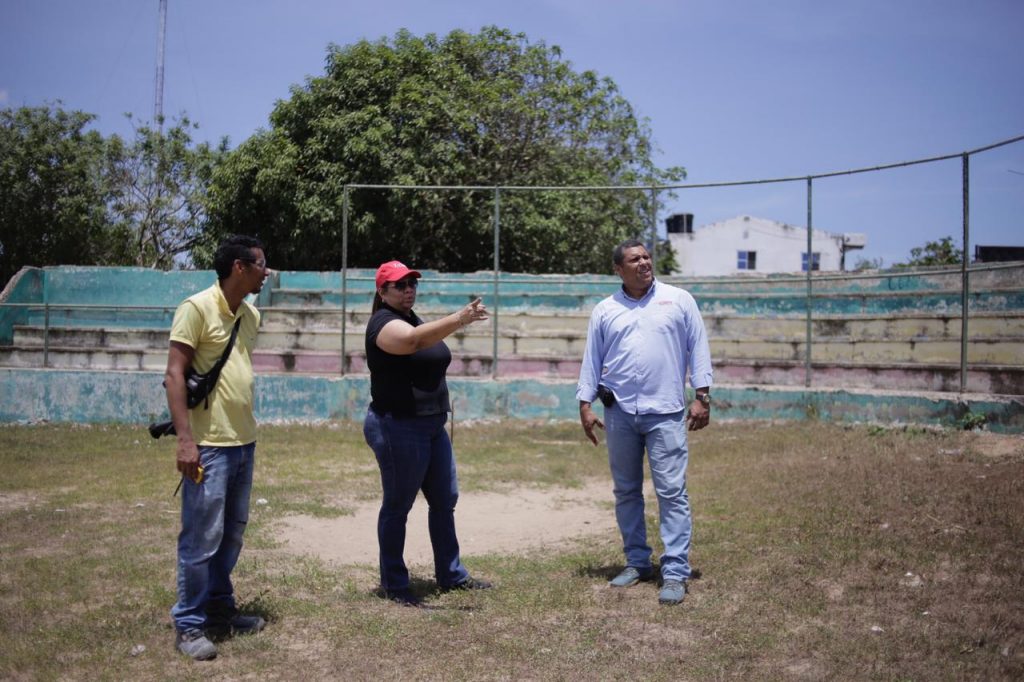 La directora deI IDER, Lía Sará Ibarra, hizo un recorrido por los escenarios deportivos menores de la ciudad que son intervenidos, con el fin de verificar los avances en las obras y que se cumplan los requisitos para entregarlos en las mejores condiciones a la comunidad.