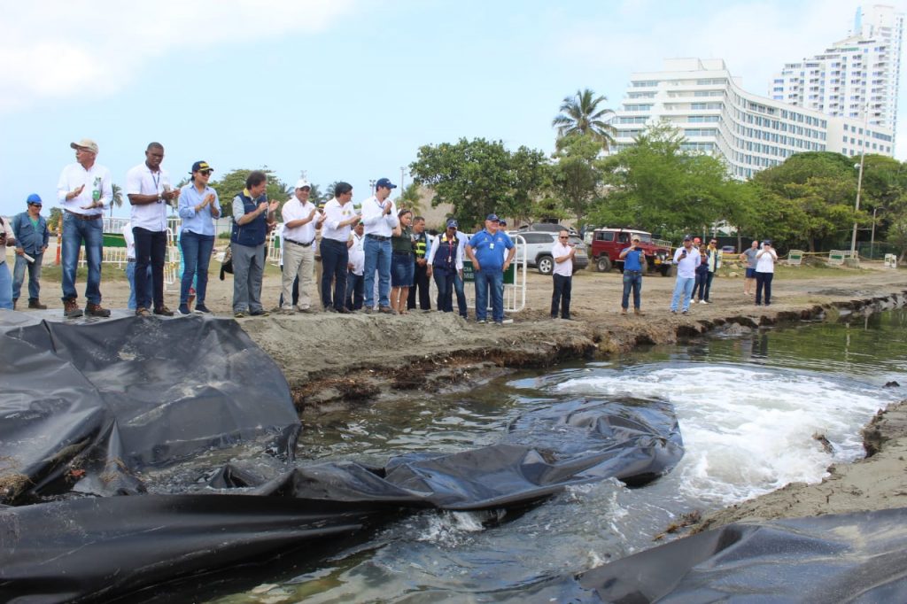 “Hoy damos una buena noticia con una respuesta rápida, oportuna y eficiente. Vemos como el agua del mar entra a El Laguito y le da vida a este cuerpo de agua”, dijo.