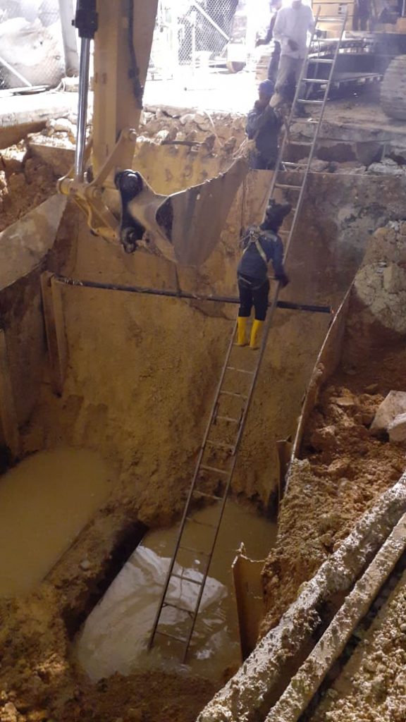 Además de la gestión logística correspondiente, la empresa inicia el desplazamiento de equipos y maquinaria pesada, la limpieza del sitio para decidir la hora de la salida del servicio de esta tubería y así comenzar con el drenaje y excavaciones preliminares, en aras de estabilizar ese terreno rellenado con material endeble, y de esta manera garantizar la seguridad al personal propio y de contratistas, durante el tiempo que se extiendan estas labores.
