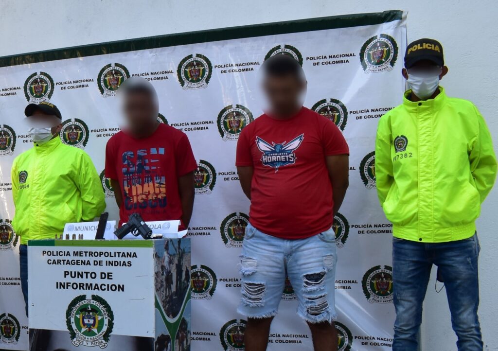 Se logró la incautación (01) pistola, (01) proveedor, (09) cartuchos 9mm, (01) vehículo tipo taxi y equipos celulares. Estos sujetos quienes pertenecen al componente criminal focalizado héroes del caribe línea militar dedicada al homicidio selectivo en la Ciudad de Cartagena.