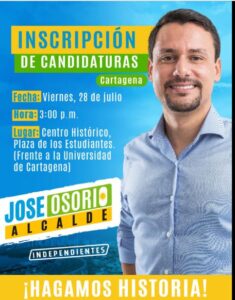 SE AGIGANTA JOSÉ LUIS OSORIO EN CARTAGENA CON INDEPENDIENTES, HOY SE INSCRIBE Y LLEVARÁN CANDIDATOS AL CONCEJO, ASAMBLEA Y JAL