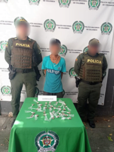En otro extremo de la ciudad, en el barrio La Candelaria, fue capturada una persona de 37 años de edad, conocida como “Manuel”, a quien uniformados de la Policía al solicitarle un registro logran palpar un bulto en la parte derecha de la cintura que tenía en su interior una bolsa que contiene 184 envolturas de papel con bazuco.