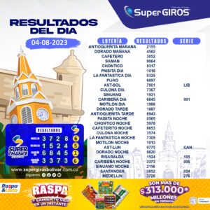 ☀️¡Feliz día con SuperGIROS Bolívar! Conoce los resultados del 4 de agosto⬆️. Consúltalos diariamente en: https://supergirosbolivar.com.co/apuestas.