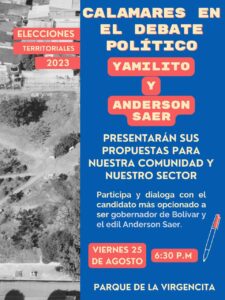 El barrio Calamares tendrá la oportunidad de escuchar  a sus dos primeros candidatos que aspiran a administrar el departamento de Bolívar y la JAL No 1. Ese debate político se traslada al Parque de la Virgencita, Quinta Etapa, esta noche a las 6.30 de la tarde.
