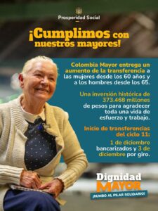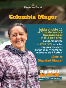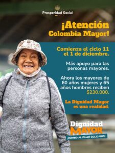 El director de Prosperidad Social, Mauricio Rodríguez Amaya (@mao_rodriguez1), anunció que este lunes (1 de diciembre) comenzará la entrega del ciclo 11 del programa Colombia Mayor, que incorpora un aumento significativo en el monto para las mujeres mayores de 60 años y los hombres mayores de 65 años.