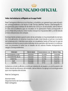 El estadio Jaime Morón León, El Hijo del Sol, será escenario del último partido de la primera fase del Torneo BetPlay Dimayor. A las 3:30 p.m., Real Cartagena recibirá a Barranquilla FC, en un duelo decisivo para ambos equipos: los locales buscan cerrar con victoria y mejorar su funcionamiento, mientras los visitantes están obligados a ganar para entrar en el grupo de los ocho clasificados.