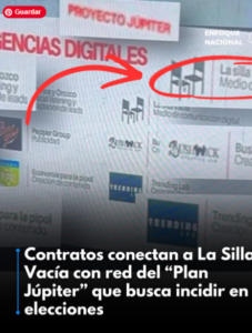 - Una investigación de Señal Investigativa destapó el “Plan Júpiter”, estrategia electoral dirigida por Jaime Bermúdez Merizalde, excanciller y cerebro de Uribe. Con siete mil millones ya invertidos, el plan combina manipulación digital y talleres empresariales para favorecer a Paloma Valencia. Denuncias por constreñimiento laboral confirman la gravedad: la democracia colombiana enfrenta una maquinaria de miedo y noticias falsas.